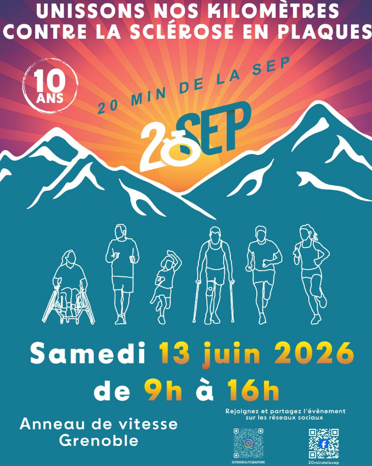 Rendez-vous le samedi 13 juin prochain à partir de 9h à l’anneau de vitesse de #villedegrenoble pour l’édition 2026 des 20 min de la SEP organisé par SEP Rhône-Alpes Dauphiné et l’hôpital de jour de neurologie du CHU de Grenoble.